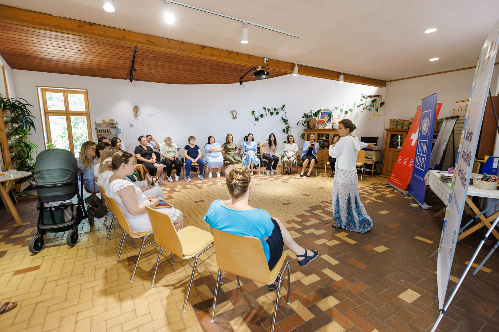 Turul interactiv de la „EcoVillage Moldova” a impresionat-o și i-a oferit o ocazie în plus pentru a cunoaște soluții eco-sustenabile pe care să le poată implementa în comunitatea sa. Participarea la eveniment a fost și un moment de respiro pentru Elizaveta care, pe lângă rolul său de lideră, este și mamă a trei copii.